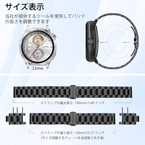 [ZoRoll] 22 mm バンド Huawei Watch GT 6/GT 6 Pro/GT 5/GT 5 Pro/GT 4/4 (46 mm)/Ultimate 2 対応 ステンレスバンド 金属ベルト 腕時計バンド スマートウォッチバンド 交換ベルトステンレス製 防錆 男女兼用 サイズ調整工具付き 用の Huawei Watch 4 Pro 48 mm (ブラック)