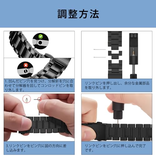 [ZoRoll] バンド 20mm 22mm ステンレスバンド 20ミリ 22ミリ 金属ベルト スマートウォッチバンド 20mm 22mm 交換ベルトステンレス製 防錆 バタフライバックル 男女兼用 サイズ調整工具付き (20ミリ対応 ブラック)