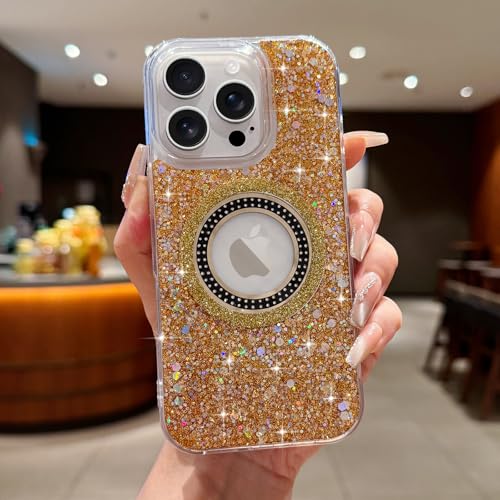 Teageo iPhone 14 Pro Max 対応 ケース、MagSafe対応 韓国 女性 キラキラ 輝く 磁気 軽薄型 携帯電話カバー 柔らかく 耐衝撃 適用 iPhone 14 Pro Max 保護ケース(ゴールド)