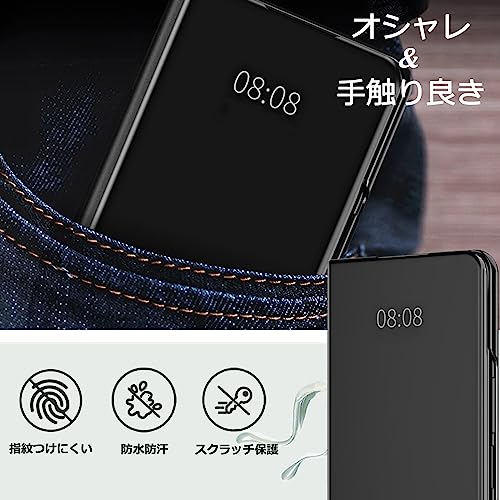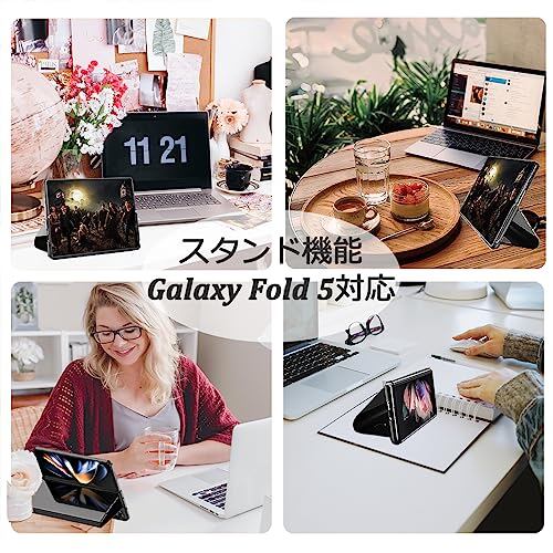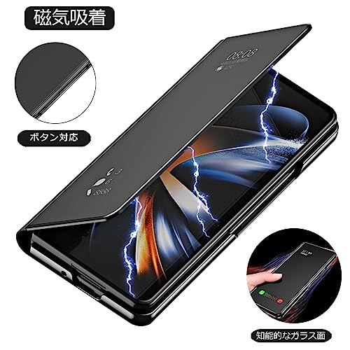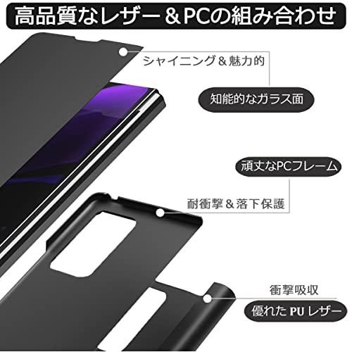 NINKI適応Galaxy Z Fold 5ケース [ SC-55D | SCG22 ] ミラー面 スタンド機能 PU革+PCフレーム+ガラス面 薄型 快適 耐衝撃 落下保護 カメラ保護 携帯全面カバー サムスン ギャラクシー フォールド 5 ケース (ブラック)