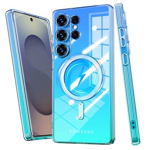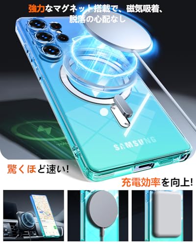 Galaxy S25 Ultra 用 ケース Magnetic対応 クリア 薄型 グラデーション色 SC-52F SCG32 用 スマホケース ストラップホール付き マグネット搭載 耐衝撃 米軍MIL規格取得 TPU 軽量 透明 ワイヤレス充電 おしゃれ 黄変防止防塵一体型 人気 ギャラクシー S25 ウルトラ 用 携帯カバー ブルー/緑 MD-CXJB-01-05