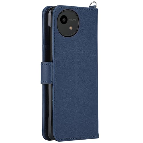 wisers AQUOS wish5 SH-52F SH-M32 ケース 手帳型 スマホケース 対応 (ダークブルー) (カードホルダー/スタンド機能付き) ストラップ 2種付き (ハンドストラップ/ネックストラップ) 2025年 新型