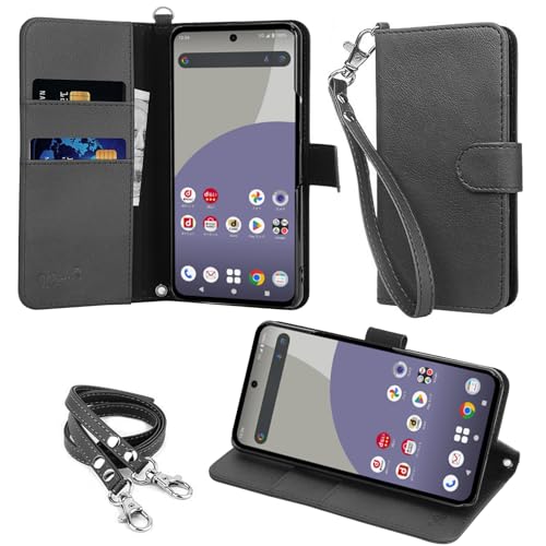 wisers AQUOS sense 9 sense 10 対応 ケース 手帳型 スマホケース (ブラック) (カードホルダー/スタンド機能付き) ストラップ 2種付き (ハンドストラップ/ネックストラップ) SH-53E SHG14 A405SH SH-M29 SH-53F SHG15 A505SH SH-M33