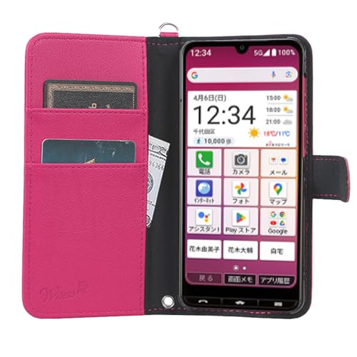 wisers BASIO active3 KYG04 対応 手帳型 スマホケース (ピンク) 牛革調PUレザー (カードホルダー/スタンド機能付き) ストラップ 2種付き (ハンドストラップ/ネックストラップ) 2025年 新型