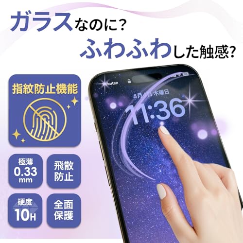 【 日本初!縁まで硬い最高硬度10Hガラスフィルム 】 新しい時代のiPhone保護フィルムが登場 日本初の独自アンチグレア技術を搭載し、自社オリジナル技術によって開発されたこのフィルムは、 最新のテクノロジーが凝縮された逸品です。 硬度10Hの素材で作られ、頑丈さと割れない性能を備えています。 これまでにない頑丈さと硬さを持つため、本体を傷つける心配はありません。 iPhone専用に設計されたこのフィルムは、最新のデザインに完璧にフィットし、 本体をしっかりと保護します。 驚くべきアンチグレア機能により、画面上の反射や眩しさを劇的に軽減し、 快適な視認性を提供します。
