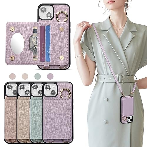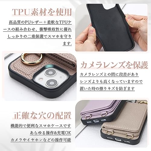 iPhone16 ケース 手帳型 ショルダー おしゃれ スマホケース iPhone16 手帳型 ショルダー 斜めがけ 肩掛け 首掛け リング付き ストラップ 財布型 ケースカバーiPhone16 pro ケース 携帯カバー あいふぉん16携帯電話ケース レディース アイフォン 16 ショルダー付きケース カード小銭入れ (スモーキーパープル)