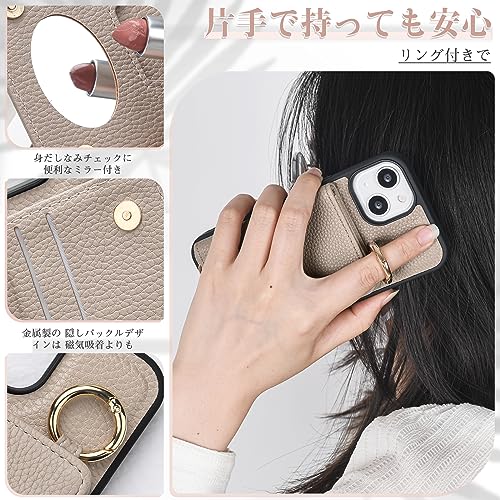 【上質な素材】手触りのよい柔らかなシボ革風PUレザーにゴールドパーツで華やかに! 高品質のPUレザーとPC素材の二重保護でスマホもしっかり保護。指紋や油を防ぐこともできで、手触りは非常に快適です。また、レーム部分とカメラのフチを高く設計し、平らな場所においても、液晶画面とカメラレンズに直接触れることがなく、スマホ本体を傷から360度しっかり保護してくれます。