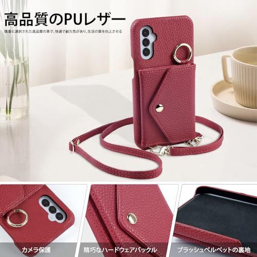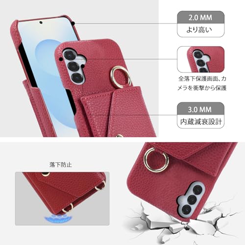 CASAFUNY Galaxy S25 ケース 手帳型 ショルダー 調節可能なショルダーストラップ 首掛け 肩掛け 斜めがけ レディース 化粧鏡 カードケース ストラップ 携帯ケース ギャラクシーS25 ケース手帳型 カード収納 SC-51F SCG31 ケース 手帳型縦置き 横置き スタンド 耐衝撃 肌感PUレザー シンプル スマホケース 軽量 携帯カバー(6.1インチ)レッド