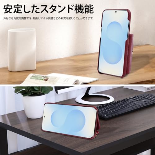 【スタンド機能&金属バックル】:スタンド機能により、映画やテレビドラマ、バラエティ番組やビデオ通話を視聴する際にとても便利です。お好きな角度に調整でき、両手が自由になり、動画視聴や読書を楽しめます。ギャラクシー S25 スマホケースには簡単に開閉できる金属製のバックルが付いています。金属製のバックルを締めて財布をしっかりと保護します