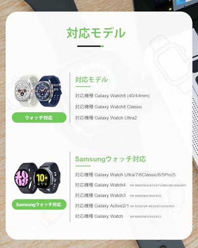 【広い対応】Galaxy Watch 8 / 8 Classic / 7 / 6 / 6 Classic / 5 / 5 Pro / 4 / Active2 / Active に対応。強力マグネットで安定吸着。※サードパーティ製アクセサリーです。