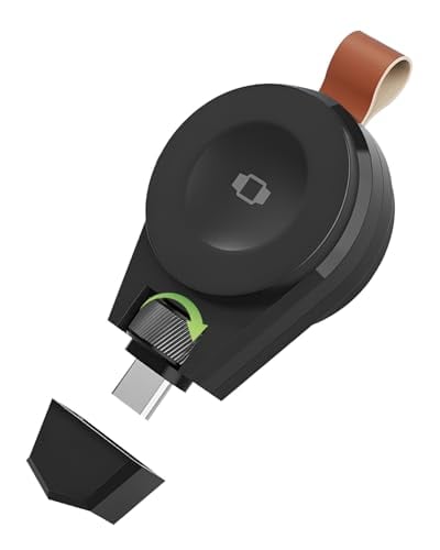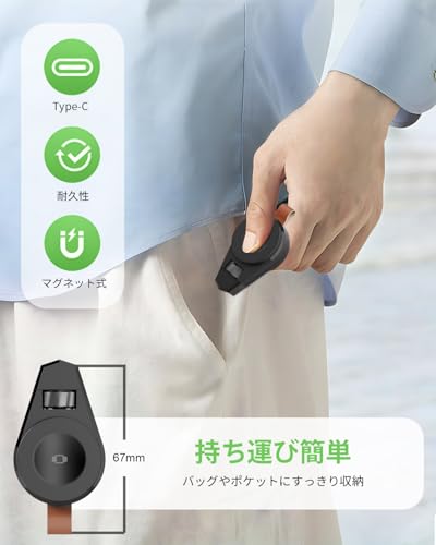HUKWIMO Galaxy Watch 8対応 充電器 ポータブル 磁気ワイヤレス Type-C回転式コネクタ 直挿し 防塵キャップ レザー吊り下げ 小型 軽量 旅行/出張に最適(ブラック)