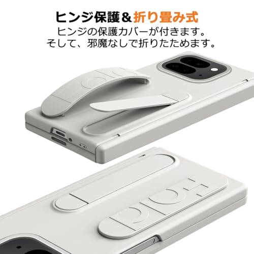 NINKI適応 Google Pixel 10 Pro Fold 2025用 ケース ハンドバンド フィルム一体型 PC製 ストラップ 画面保護 キックスタンド付き グーグルピクセル 10プロ フォールド スマホケース (ホワイト)