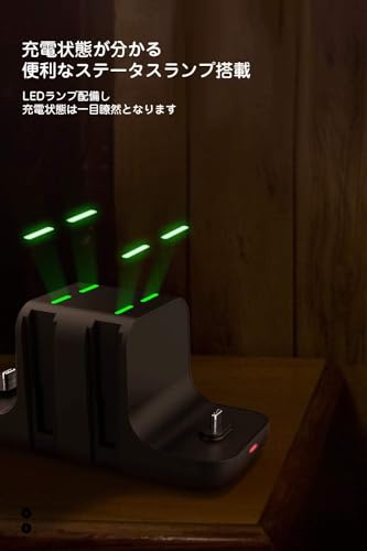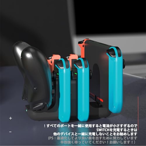 【6in1充電】:本製品はSwitch本体、Joy-Conコントローラー4台、Proコントローラー1台を同時に充電できます。最大6台のデバイスを同時に充電できるのが最大の特徴です。