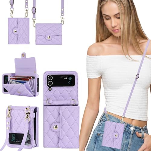Galaxy Z Flip3 5Gスマホケース 綺麗な かわいい SCG12 大容量オルガン設計財布型ケース おしゃれ 人気 可爱い SC-54B 肩掛け 縄掛け 斜めがけ ショルダー ケース ギャラクシーZフリップ3 携帯 保護ケース 小香風オルガンケース 指紋防止 落下防止 Z Flip3 PU+TPU携帯カバー 薄型軽量耐衝撃 (パープル, Galaxy Z Flip3)