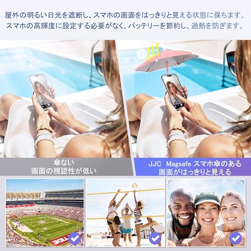 JJC 磁気 Magsafe対応 スマホ傘 日焼け防止 スマホリング スマホホルダー スマホスタンド 360°回転可能 iPhone 17 16 15 14 13 12 Pro Max Android スマホグリップに対応 超强磁力 片手操作 遮光 グレア 反射防止 スマホアクセサリー ビーチ 水泳プール Vlog Tiktok YouTubeビデオ撮影 写真 自撮り アウトドアに適用 ピング