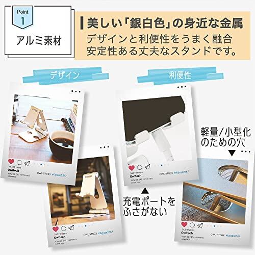オウルテック アルミスタンド スマホ タブレット用 角度調整可能 置いたままで充電可能 コンパクトに折りたたみ可能 ブラック OWL-STD03-BK