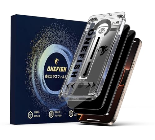 【覗き見防止フィルム】Onefish iPhone 16 Pro Max用 強化ガラススクリーンプロテクター、覗き見防止フィルム、気泡なし、簡単なインストール、自動ほこり除去、抗指紋、抗飛散、抗スクラッチ、2枚