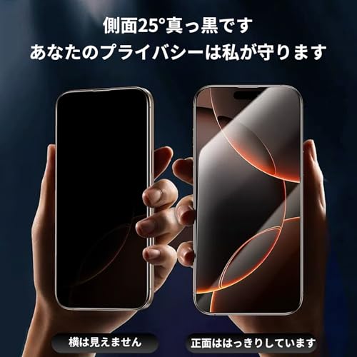 【覗き見防止フィルム】Onefish iPhone 14 Pro /15用 強化ガラススクリーンプロテクター、覗き見防止フィルム、気泡なし、簡単なインストール、自動ほこり除去、抗指紋、抗飛散、抗スクラッチ、2枚