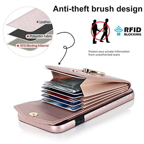 GOKIGIOD 適用 iPhone 17 pro max ケース リング付き 背面 財布型 カード入れ いphone17promax リング カバー ストラップ アイフォン 17 プロ マックス スマホケース 背面ポケット カード収納 可愛い お洒落 RFIDスキミング防止機能 カードポケット ハンドストラップ 縄掛け 携帯カバー Pink ピンク ローズゴールド Rose Gold