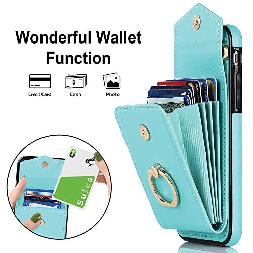 GOKIGIOD 適用 iPhone 17 pro max ケース リング付き 背面 財布型 カード入れ いphone17promax リング カバー ストラップ アイフォン 17 プロ マックス スマホケース 背面ポケット カード収納 可愛い お洒落 RFIDスキミング防止機能 カードポケット ハンドストラップ 縄掛け 携帯カバー ミントグリーン Mint Green