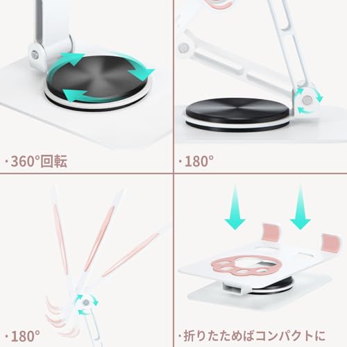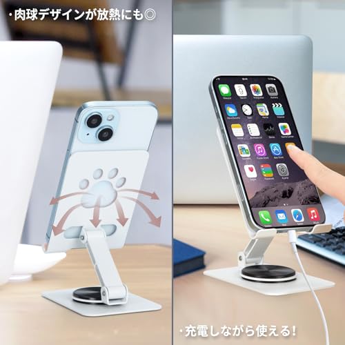 安定性: 滑り止め加工された広い底面と堅固なアルミ合金構造で、デバイスを安定して支持