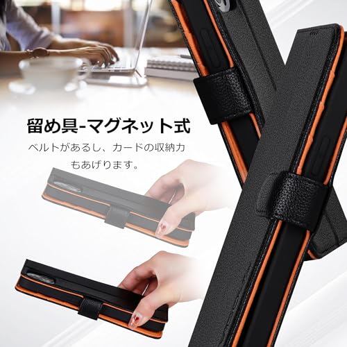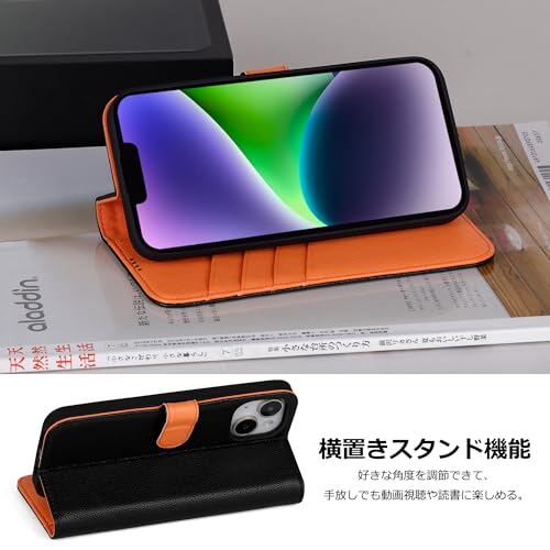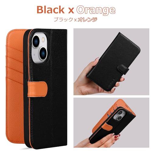 VISOUL iPhone15 Plus ケース 手帳型 本革 アイフォン15 Plus手帳ケース スマホケース レザーケース カード収納 携帯ケース 全面保護 マグネット 柔軟なTPU素材 マグネット式 スタンド機能付き 6.7インチ対応 アイホン 15 プラス ブラック オレンジ