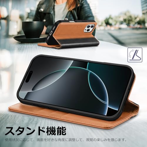 TUCCH iPhone16 PrMax 対応 ケース 手帳型 iPhone16プロマックス手帳型ケース カード収納 キックスタンド機能 [RFIDブロッキング] 耐衝撃 全面保護 PU合皮 TPU素材 あいふぉん16プロマックススマホケース 2024年発売 6.9 インチ アイフォーン16 プロマックス 対応 ブラック&ブラウン