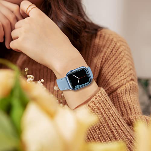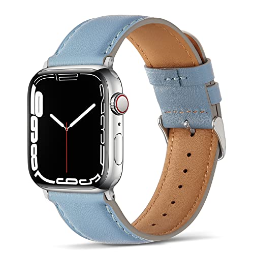 Anlinser コンパチブル Apple Watch バンド 49mm 46mm 45mm 44mm 42mm、本革交換用バンド アップルウォッチ Ultra 3/2/1 シリーズ11/10/9/8/7/6/5/4/3/2/1/SE に対応(シエラブルー)