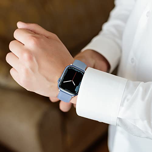 Anlinser コンパチブル Apple Watch バンド 42mm 41mm 40mm 38mm、本革交換用バンド アップルウォッチシリーズ11/10/9/8/7/6/5/4/3/2/1/SE に対応(シエラブルー)