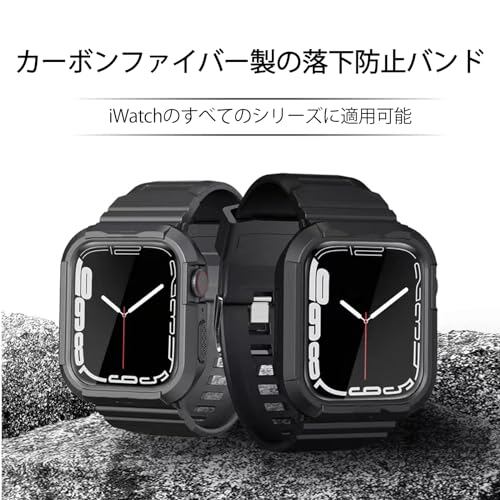 [TOORQR] コンパチブル Apple Watch バンド アップルウォッチ バンド 45mm 44mm 42mm アップルウォッチ ケース カバー PC TPU 二重構造 軍用グレードの保護 落下防止 耐衝撃 耐久性 傷防止 長さ調節 apple watch Series 9/8/7対応-ブラック