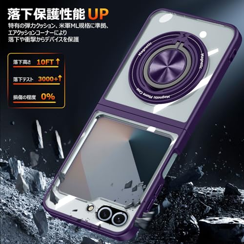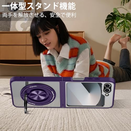 【Tgaoleyd】Galaxy Z Flip6 用ケース リング付き 耐衝撃 tpu フルプロテクトデザイン スマホケース 軽量 薄型 スタンド機能 ギャラクシー ゼット フリップ6 用 カバー 6.7インチ マグネット搭載 擦り傷防止 落下防止 米軍MIL規格 車載ホルダー対応 取り出し易い オシャレ 人気 携帯カバー 紫 D78-63