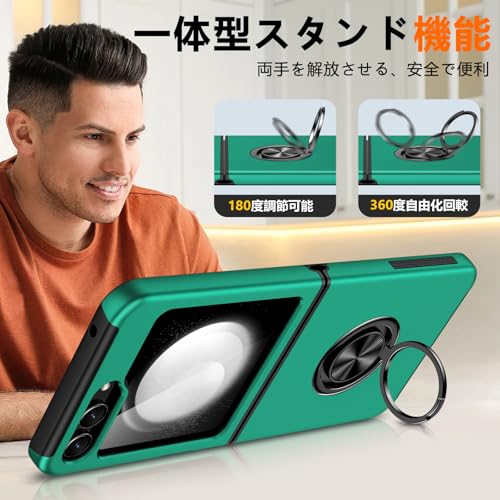 Galaxy Z Fold7 用 ケース リング付き 耐衝撃 内蔵スタンド付き 衝撃吸収 tpu 薄型 擦り傷防止 シリコン スタンド機能 車載ホルダー対応 二重構造 PC バンパー ギャラクシー Z フォールド7 5G 用 スマホケース 全面保護 360°回転 おしゃれ 人気 携帯カバー 緑 Q44-YSZH-Fold7-LV