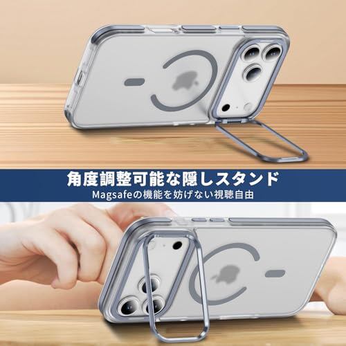 TOO&SOO 対応 iPhone 17 Pro ケース 半透明 magsafe対応 いphone17pro ケース ワイヤレス充電対応 カメラ保護 調整可能ブラケット 防指紋 黄変防止 滑り止め 車載ホルダー 対応 あいふおん17pro携帯カバー アイフォン17プロ カバー 耐衝撃 傷つけ防止 よ肌触り TPU シンプルさ 人気 上質 グレー