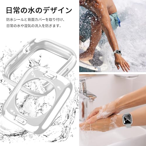 【360ど度 防水設計】Apple Watch ケース特殊加工による360ど度 防水設計により、 手を洗う時はもちろん汗をかいた時、シャワーを浴びた時にもかかわらずにアップルウォッチをご使用できます。 ※アップルウォッチ本来の防水性能を向上させるものではありません。プールや海などの水場でのご使用時はアップルウォッチの説明に従い、スキューバダイビング、ウォータースキーなど、水圧が高くなったり、所定の水深より深く潜るようなアクティビティはしないでください。
