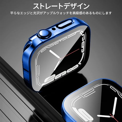 YUGYUG 対応 Apple Watch ケース Series SE3/SE2/SE/6/5/4 Apple Watch カバー PC素材 防水 360ど度 3D直角エッジデザイン 光沢式 アップルウォッチ ケース ガラスフィルム 一体型 日本旭硝子材 二重構造 アップルウォッチ カバー 全面保護 強化ガラス キズ防止(40mm,ブルー)