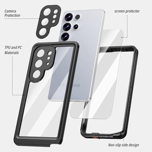 Galaxy S25 Ultra用 防水ケースSC-52F SCG32クリアケース 透明 防水 防塵 防雪 耐衝撃 360°完全保護ケース IP68防水レベル 米軍MIL規格 指紋認証可 ギャラクシーS25 Ultraスマホケース ストラップ付き ギャラクシーS25 ウルトラ ワイヤレス充電 雨の日 お風呂 温泉 水中撮影 粉塵対策 適用 日本語説明書付き