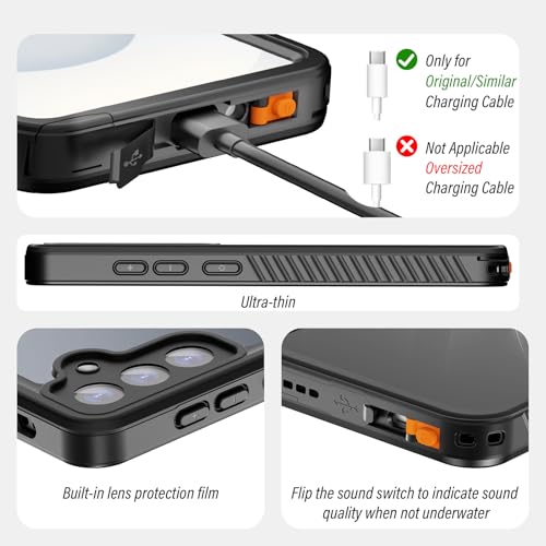 Galaxy S25用 防水ケースdocomo SC-51F AU SCG31クリアケース 透明 防水 防塵 防雪 耐衝撃 360°完全保護ケース IP68防水レベル 米軍MIL規格 指紋認証可 ギャラクシーS25スマホケース ストラップ付き ギャラクシーS25 ワイヤレス充電 雨の日 お風呂 温泉 水中撮影 粉塵対策 適用 日本語説明書付き (Galaxy S25)