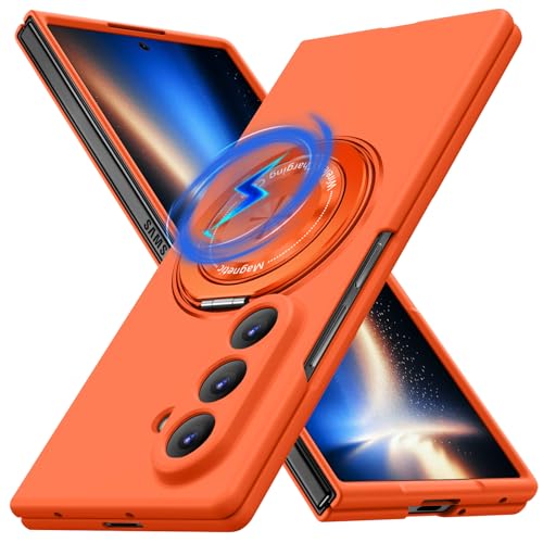 Galaxy Z Fold 7 用 ケース マグネット搭載 リング付き 耐衝撃 PC スマホケース スタンド機能 ギャラクシー Z フォールド7 用 ハードカバー 車載ホルダー 360°回転 黄変防止 マット感 頑丈 衝撃防止 指紋防止 おしゃれ 保護カバー オレンジ JMJP10-32