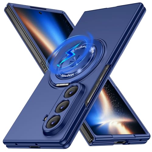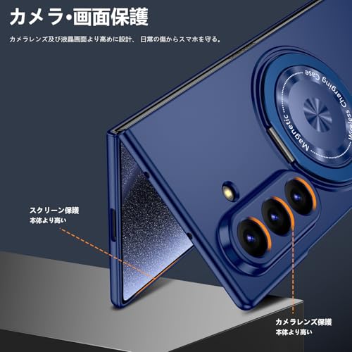 Galaxy Z Fold 7 用 ケース マグネット搭載 リング付き 耐衝撃 PC スマホケース スタンド機能 ギャラクシー Z フォールド7 用 ハードカバー 車載ホルダー 360°回転 黄変防止 マット感 頑丈 衝撃防止 指紋防止 おしゃれ 保護カバー ネイビー JMJP10-29