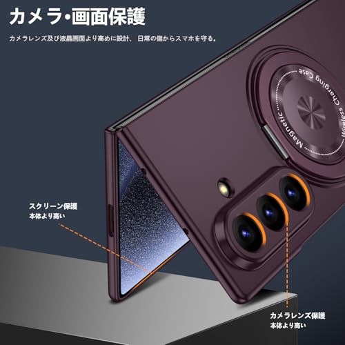 Galaxy Z Fold 7 用 ケース マグネット搭載 リング付き 耐衝撃 PC スマホケース スタンド機能 ギャラクシー Z フォールド7 用 ハードカバー 車載ホルダー 360°回転 黄変防止 マット感 頑丈 衝撃防止 指紋防止 おしゃれ 保護カバー 紫 JMJP10-33