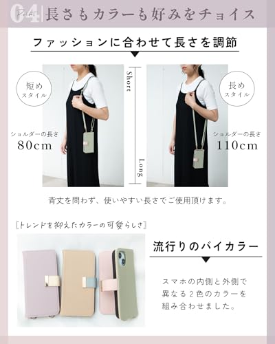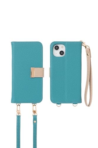 MINTY iPhone13 mini 用 ケース 手帳型 ショルダー ストラップ バイカラー ターコイズ×グレージュ