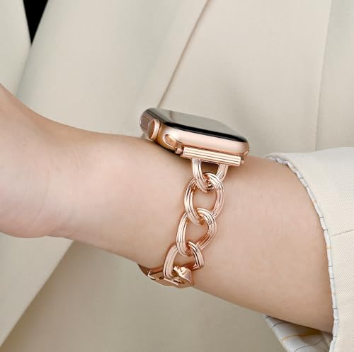 Aniaboho アップルウォッチ バンド Apple Watchバンド 金属チェーンベルト 46mm 45mm 44mm 42mm(Series 3/2/1) iWatch series 11 SE 10 9 8 7 6 5 4 3 2 1対応 簡単調整 ファッション シンプルデザイン(ローズゴールド)