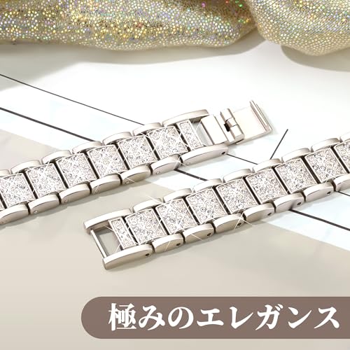 【贅沢な超薄型デザイン】この超細身のメタルウォッチバンドは、14mmの幅とヴィンテージ調の表面模様が特徴です。 さらに、きらめくダイヤモンドが散りばめられ、クラシックでありながらモダンな魅力を放ちます。 シンプルでありながら、優雅なデザインは、どんなスタイルにも自然と溶け込み、手元にエレガントな輝きをプラスします