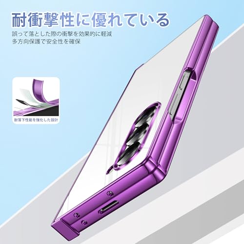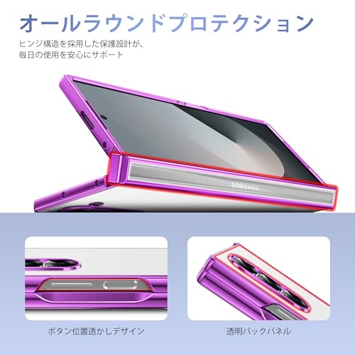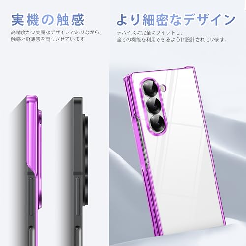 Galaxy Z Fold6 用ケース ヒンジ保護 耐衝撃 薄型 軽量 カバー ワイヤレス充電対応 レンズ保護 着脱簡単 PC素材 サムスン ギャラクシー Z フォールド6 対応 携帯ケース (紫) 28-Fold6-03