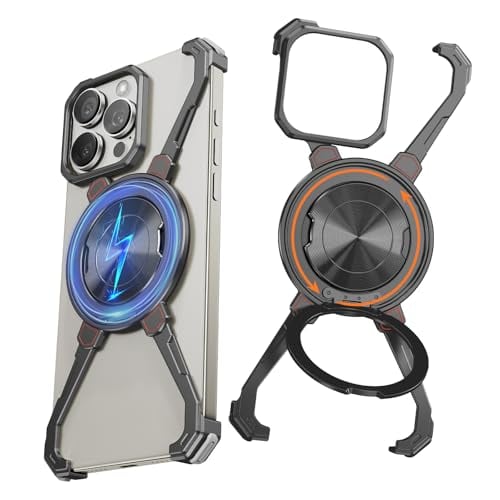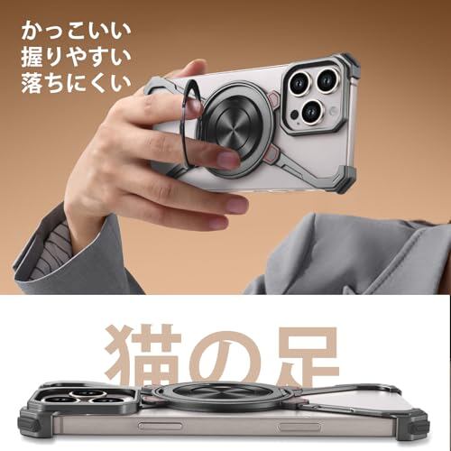 【爪ケース 360°回転スタンド】NIFBANG iPhone 16 Pro Max 用のバンパーケース アルミバンパー リングマグネット搭載 メタルフレームレスカバー 金属いphone 16 Pro Max 角度調整スタンド 縦横両対応 落下防止 米軍規格 耐衝撃 レンズ保護 四隅エアバッグ ミニマリスト薄型アイフォン16 プロマックス カバー グリップ感 持ちやすい かっこいい