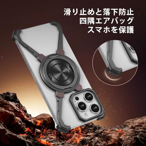 【360°回転スタンド】iPhone 16 Promax用のバンパーケースは360°回転スタンドが搭載して、万能のスタンドようになります。仕事や勉強、遊びや旅行など、どのような場面でもあなたの良い助けになってくれます。