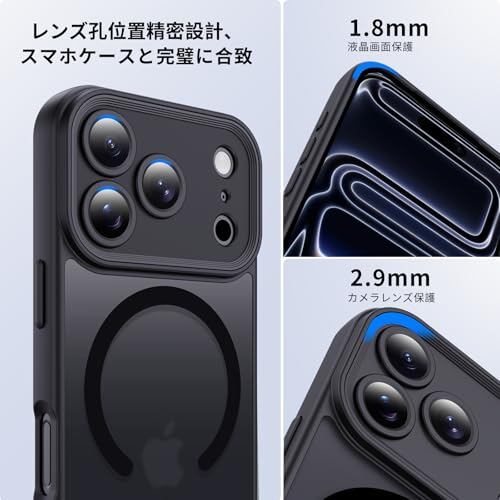 Aunote いphone17pro max ケース 精密カメラ保護 MagSafe対応 薄型 軽量 米軍MIL規格 耐衝撃 黄変防止 耐久性 スマホケース iPhone17promax ケース カバー ブラック