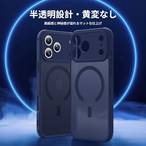 【MagSafe対応・米軍規格】Holidi いPhone17ProMax ケース MagSafe マット感 マグネット搭載 米軍MIL規格 全面保護 ワイヤレス充電 黄変なし 二重構造 スマホケース iphone 17promax Magsimpl-Series 半透明・ブルー