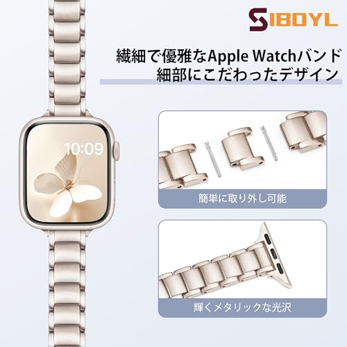 [SIBOYL]超細簡潔ベルトい対応アップルウォッチ バンドステンレス41mm 40mm 38mm 42mm(Series 11 10)、高級ラッピング技術、金属夏コンパチブルあっふウォッチバンド レディース、かわいいおしゃれ対応のApple Watchベルト、対応iWatch 11 10 Se 9 8 7 6 5 4 3 2 1-スターライト