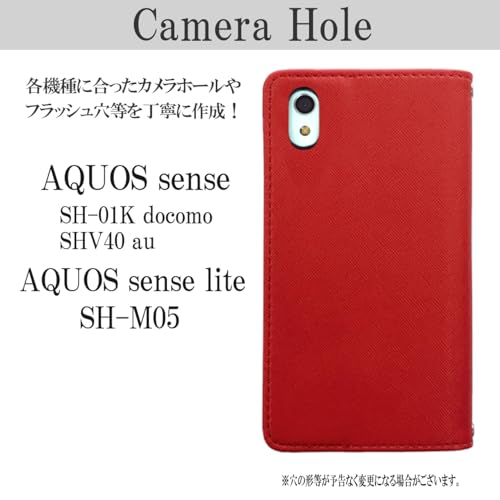 AQUOS sense SH-01K SHV40 / lite SH-M05 スマホケース ケース カバー 手帳型ケース sh-01kケース sh-01kカバー sh01k shv40ケース shv40カバー shm05ケース shm05 アクオスセンス 手帳型 手帳 スタンド機能 黒TPU スタイリッシュ 【NB】 ハリウッドレッド